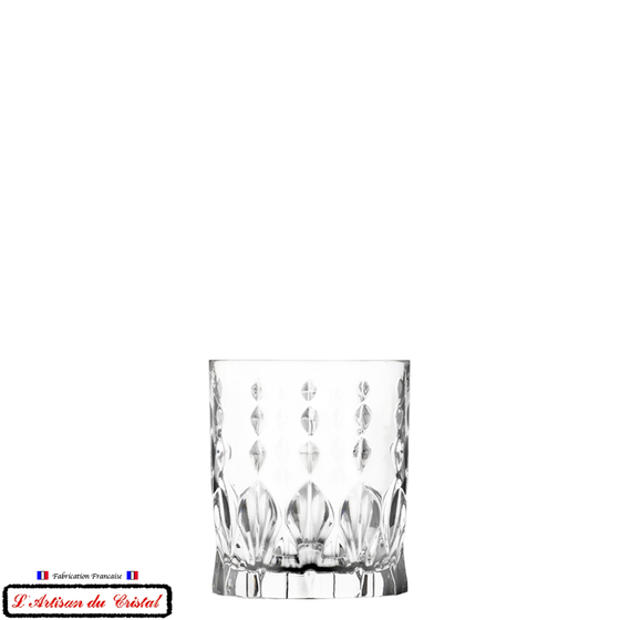 The crystal whiskey glass features a thick bottom, which keeps the drink at the ideal temperature. In fact, your hand does not warm the liquid and, if you drink your whisky "on the rocks", the ice cubes melt less quickly. The bottom is resurfaced, cut with a palmette star giving shine to the drink. The wide shape of the tumbler, which holds about a third of the whisky, is also designed to facilitate the stirring of the drink. Swirling the whisky promotes evaporation and allows the connoisseur to appreciate all its aromatic finesse.