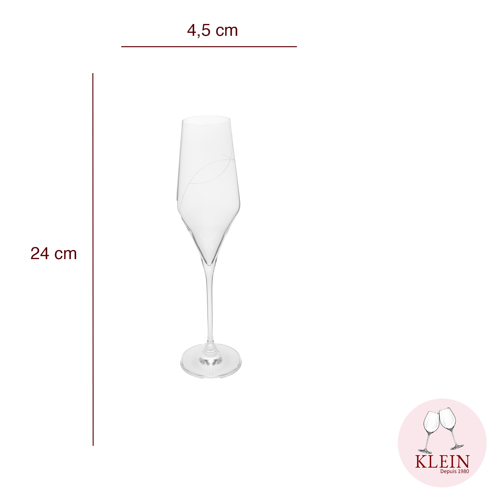 Conçu en collaboration avec un œnologue, cette flute en cristal allie élégance et performance :