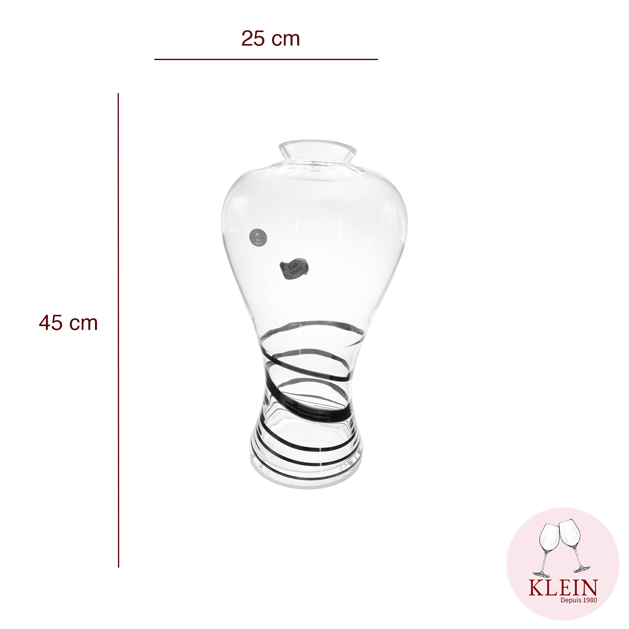 Nos vases sont Made in France. La Maison Klein l'Artisan du Cristal fait perdurer une fabrication et un savoir-faire remontant au 18e siècle. Klein 54120 Baccarat France (marque déposée INPI).