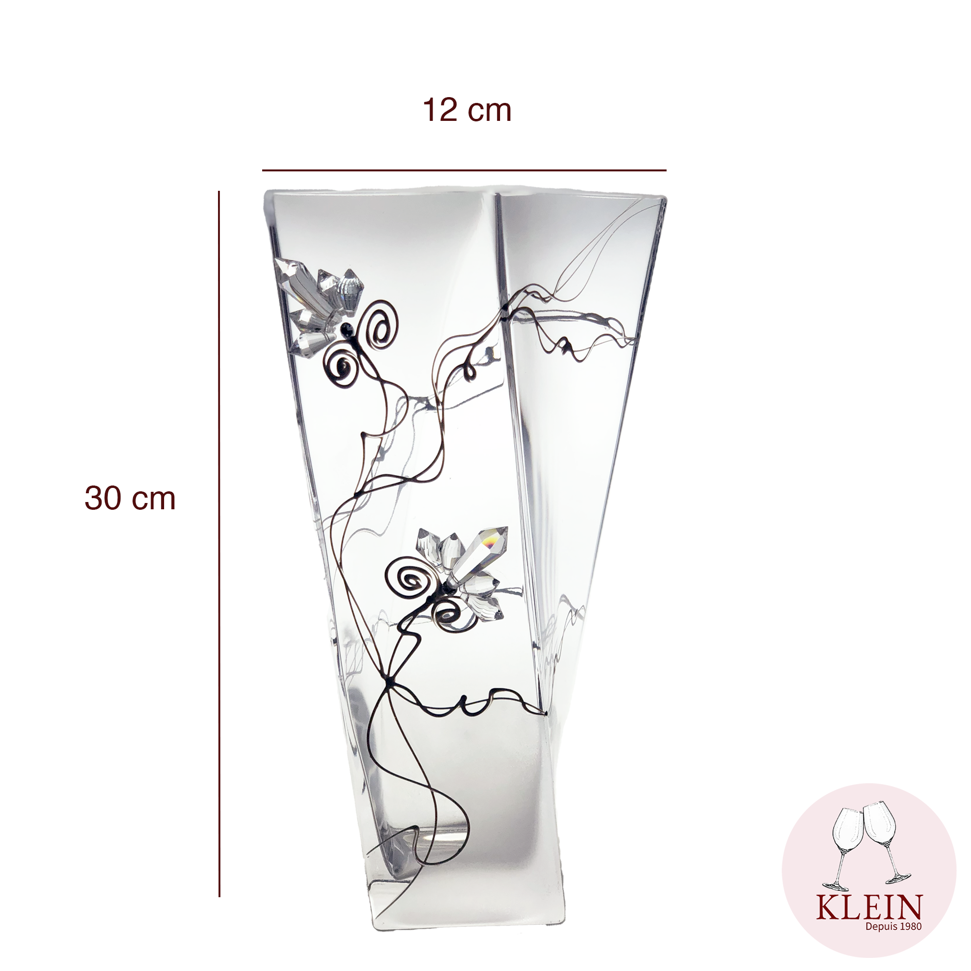 Un vase pour sublimer votre bouquet de fleurs. Avec sa forme originale, une base rectangulaire et un léger twist tout le long du vase. ce vase s'intégrera parfaitement à votre intérieur. Un décor gravé à la main, agrémenté de poignards en cristal taillé formant des fleurs.